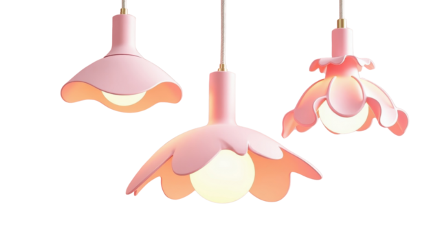 Three Pink Flower Shaped Pendant Lights Modern Home Decor Interior Lighting Fixtures