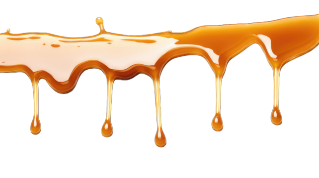 A Closeup View of a Delicious Caramel Sauce Spill Isolated on transparent background