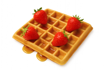 Square Waffle with Strawberries and Syrup – Transparent Background