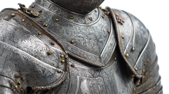 Detailed medieval knight's armor close-up. transparent background