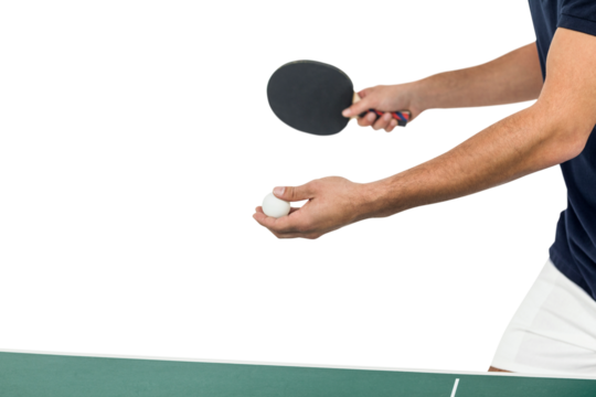 Red ping pong paddle isolated on transparent background. Red ping pong paddle ready for a game of table tennis sports isolated on white background.