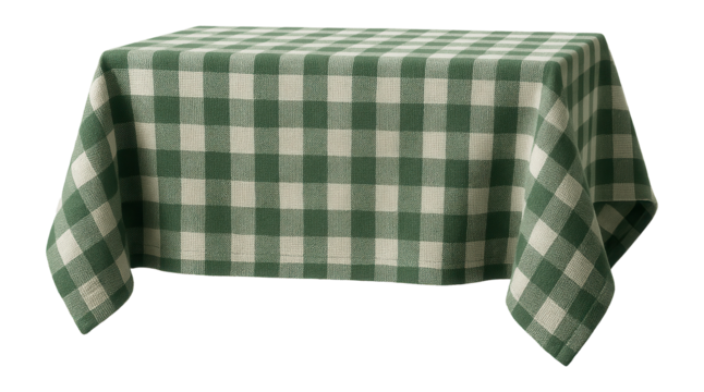 Green checked tablecloth with transparent background for creative design