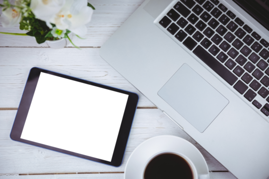 Digital png illustration of tablet and smartphone with copy space on transparent background