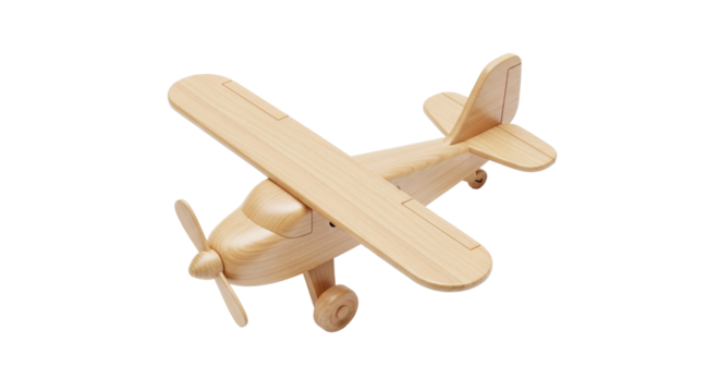 Isolated wooden airplane toy model, a nostalgic childhood game and decoration for kids room