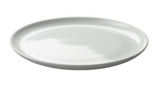 Empty white serving platter on transparent background