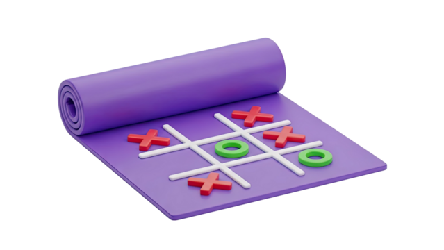 3D Tic Tac Toe on a Purple Yoga Mat on transparent background