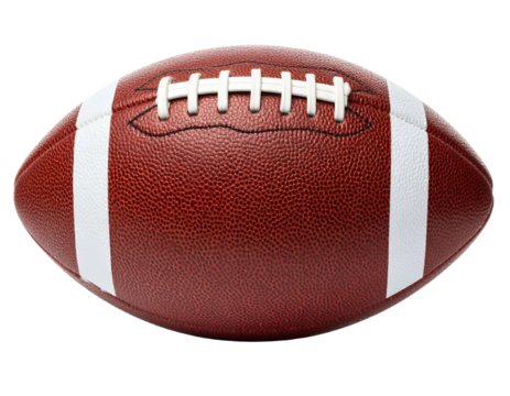 Close-up of a classic American football.  Dark-brown leather ball, stitched seams,  oval shape,  isolated against black background