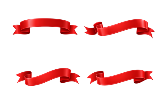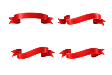 Glossy red ribbon banners in varied shapes for festive, decorative, or graphic design use