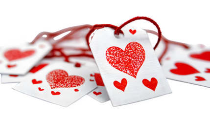 Handcrafted holiday gift tags adorned with festive designs hanging on twine against a light background inviting seasonal cheer isolated on transparent background