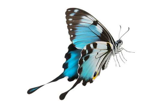 Beautiful Blue and White Long Tailed Butterfly Isolated on transparent background