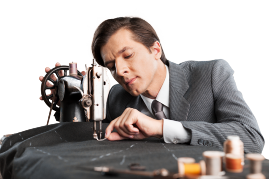 Tailor at work. Confident young tailor sewing clothes at the tailor shop