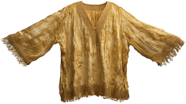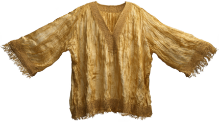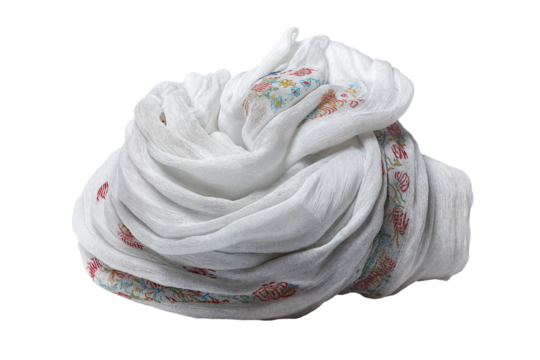 Soft textured fabric with artistic colorful embroidered details for elegant fashion styling on transparent background