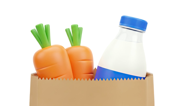Carrots and Milk Bottle in Paper Bag