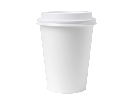 A clean white paper coffee cup with a white lid isolated on a transparent background showcasing a simple beverage container perfect for branding and design mockups