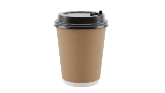 Takeaway coffee cup on transparent background with hot fresh coffee