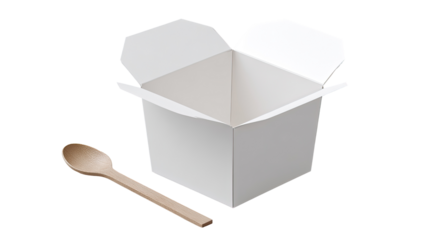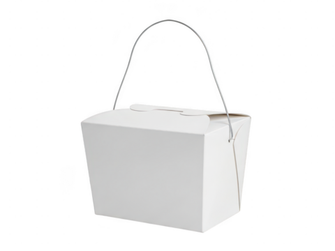White Takeout Box with Metal Handle Isolated on Transparent Background