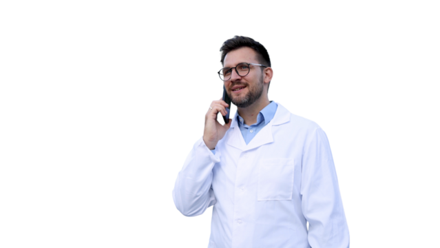 Transparent cheerful businessman holding coffee with glasses and plaid shirt