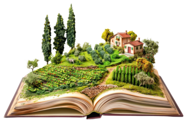 Aged Antique Book with Yellowed Pages and Dark Brown Cover, PNG