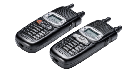 Two Black Walkie Talkies Isolated on White Background for Communication and Outdoor Use