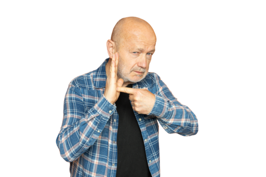 Caucasian hand gesturing on transparent background: symbol or sign concept
