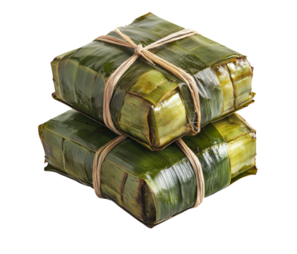 Close up shot of traditional tamales wrapped in green banana leaves, ready to eat transparent background