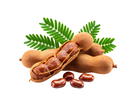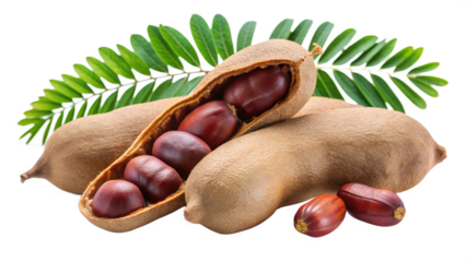 fresh tamarind pods with leaves and seeds, isolated on a transparent background, showcasing a healthy and natural food ingredient.