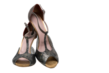 Elegant golden dance shoes with rhinestones png isolated on transparent background