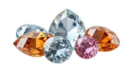 A selection of various gemstones, grouped together on transparent background