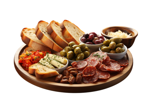 Delicious mediterranean tapas platter kitchen food cozy atmosphere top view culinary delight isolated on transparent background