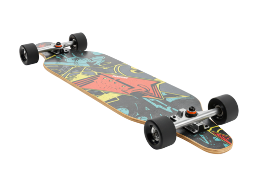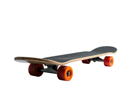 Modern skateboard with grip tape and wheels, isolated on transparent background. Perfect for youth culture, extreme sports, and street graphics.