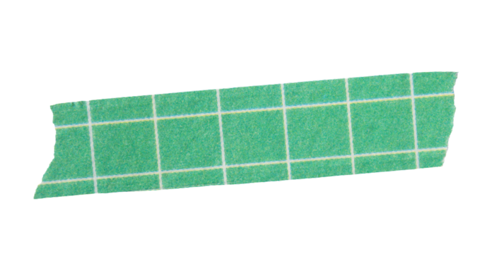 Ripped torn paper adhesive green grid pattern washi tape on transparent background