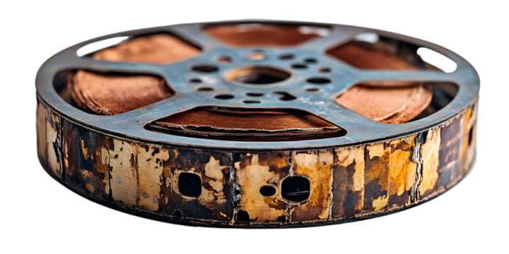 Film reel and strip movie as cinema production concept isolated on white background. Generative AI.