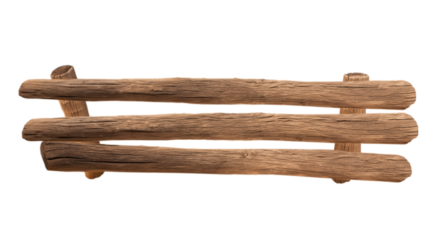 Rustic wooden coffee table with horizontal planks and tapered legs on transparent background