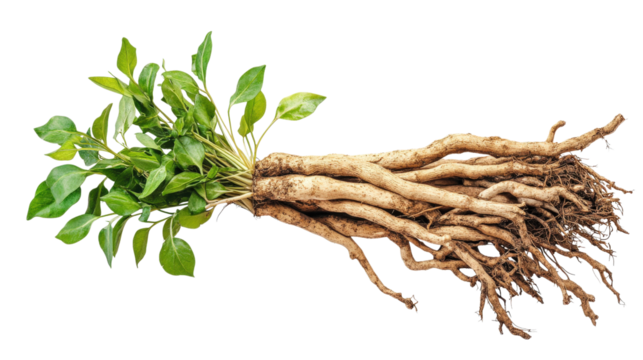 Fresh Green Plant with Tan Roots isolated on a transparent background