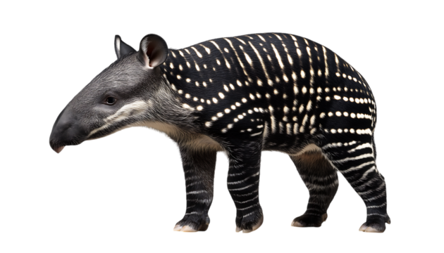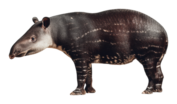 A south american tapir with distinctive white stripes on its body standing on a transparent background isolated on transparent background