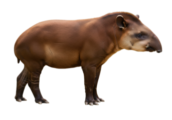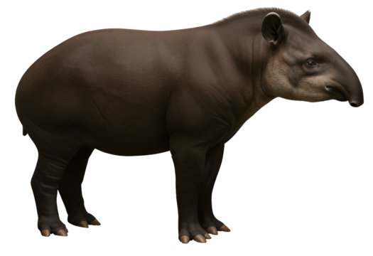 Lowland Tapir (Tapirus terrestris) PNG with transparent background and dark brown fur, a perissodactyl mammal
