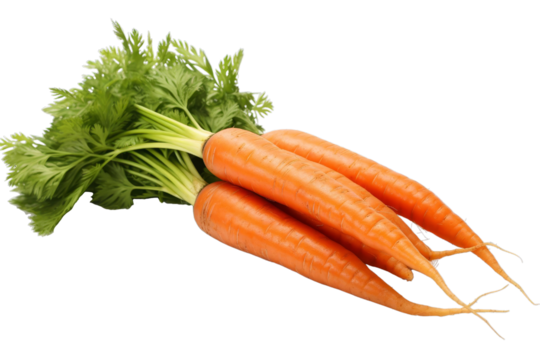 Fresh carrots with green tops isolated on transparent background
