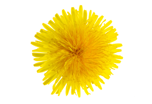 Bright yellow dandelion flower isolated on transparent background