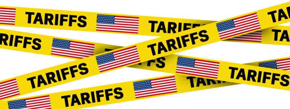 Import Tariff increase, Trade war concept. Tariffs text yellow tape isolated on white, transparent