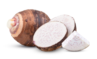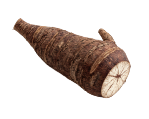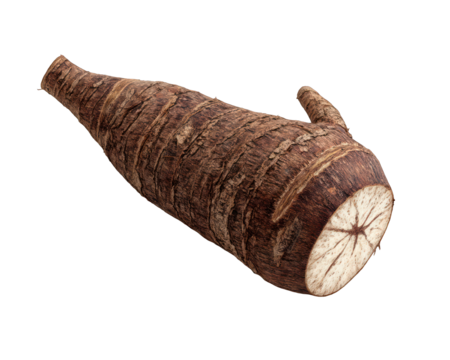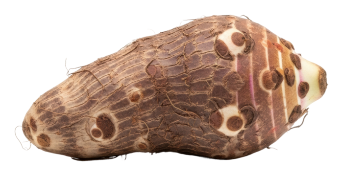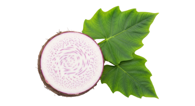 Fresh taro root cut open showing white interior isolated on transparent background
