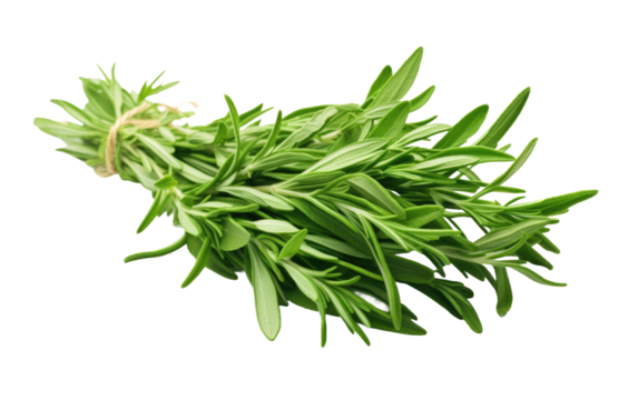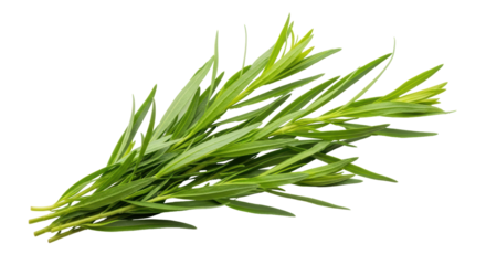 Bring the Essence of the Herb Garden to Your Meals with Tarragon Bunch on a White or Clear Surface PNG Transparent Background.