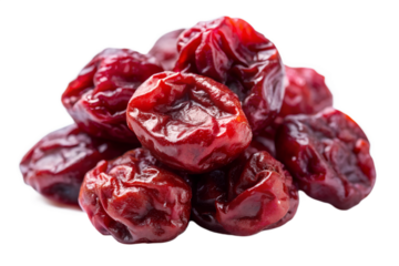 Red cherries are small, round, sweet or tart fruits with a vibrant red skin and a juicy, flavorful flesh, commonly enjoyed fresh or in desserts isolated on white background or transparent png
