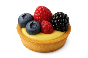 Delicious berry tartlet with fresh fruits and cream, transparent background.