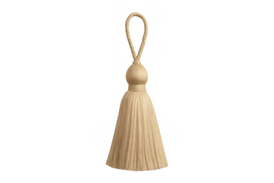 Beige decorative tassel with twisted rope loop and transparent background