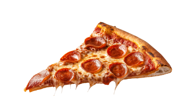 Transparent pizza slice illustration with tasty toppings