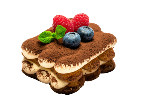Stylized delicious cake slice on transparent background