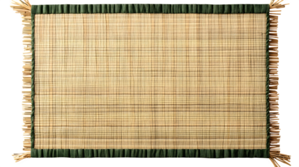 A finely woven tatami mat square, visible straw textures and green cloth border, isolated on transparent background