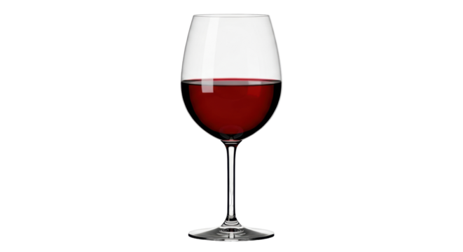 Isolated glass of red wine, elegant stemware filled with beverage for celebrations or tastings