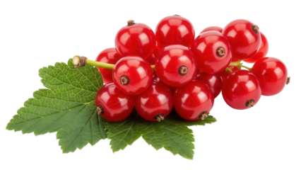 Isolated bunch of shiny red currant berries and green leaves, fresh ingredient close-up