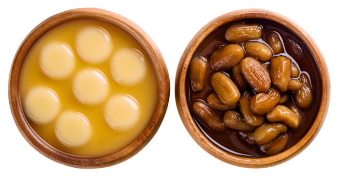 food Tau Huay (Soybean Pudding). in a wooden bowl isolated on top view. transparent background png